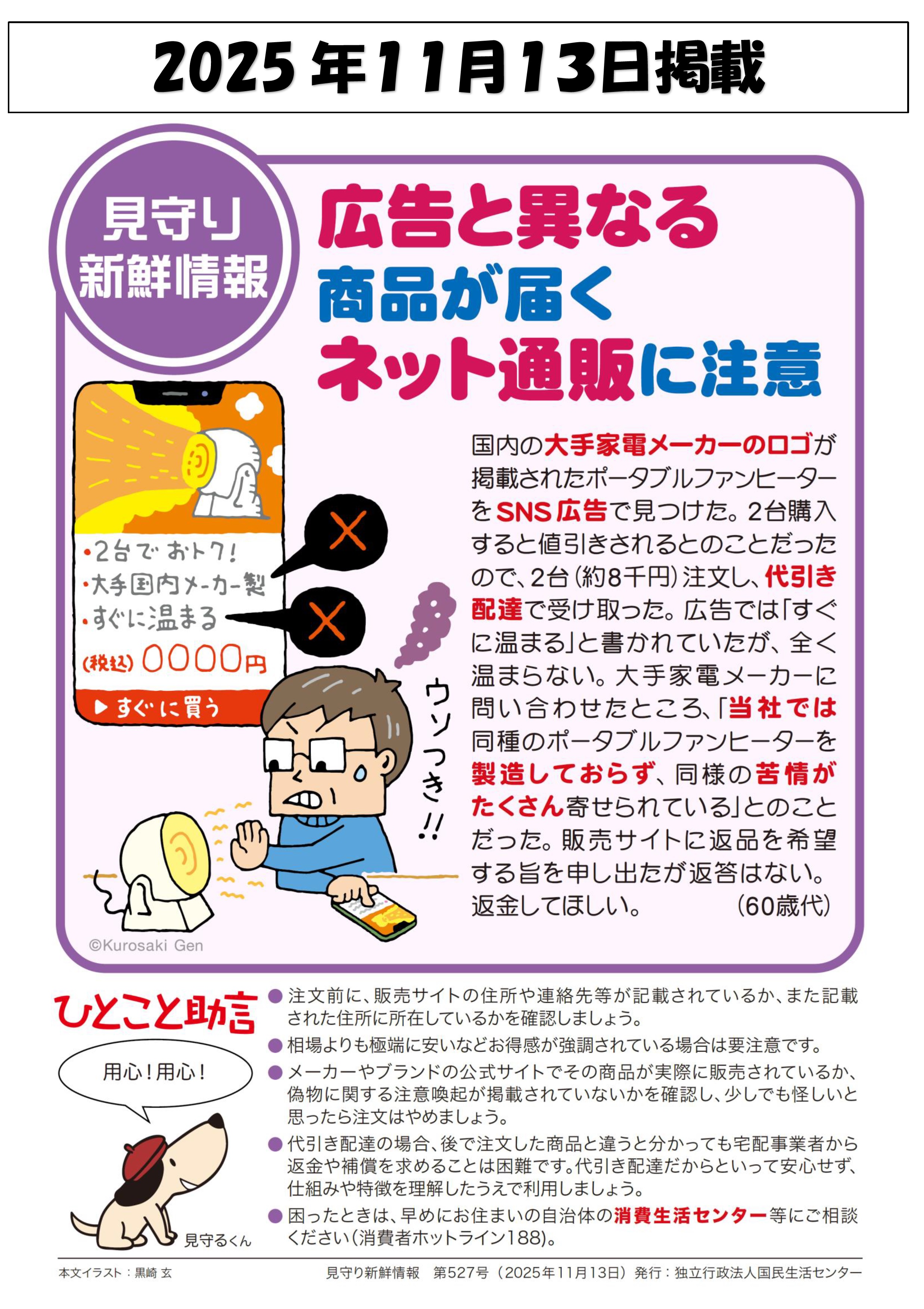 【掲載元】国民生活センターウェブサイト「見守り新鮮情報一覧」